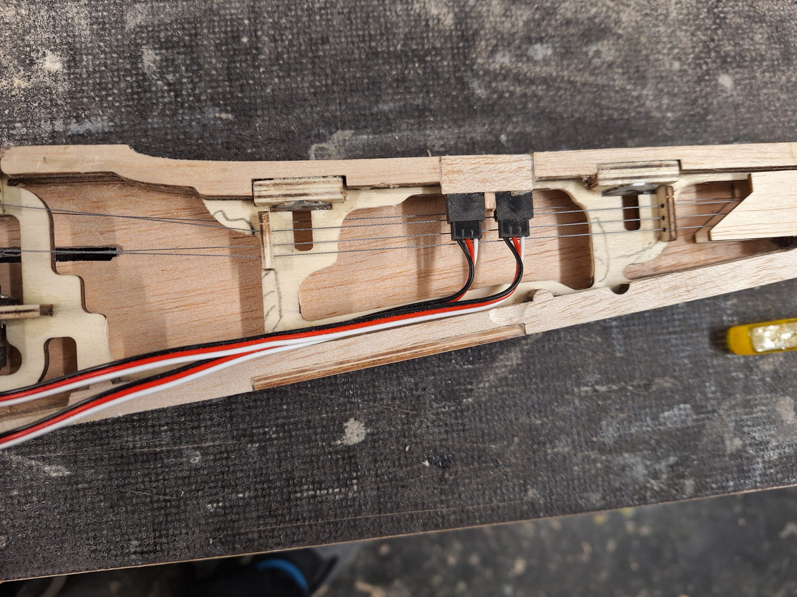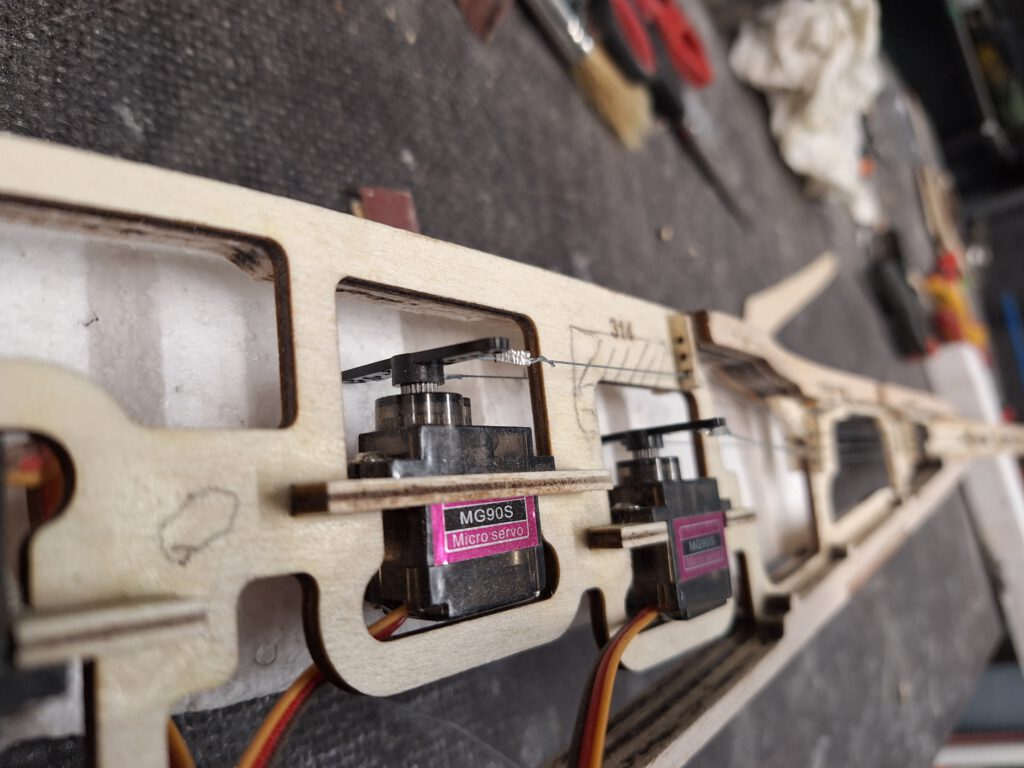 Während des Baues werden Verbesserungen gleich berücksichtigt und umgesetzt. Viele Detaillösungen können aber nur durch Versuche am realen Modell gefunden und hergestellt werden. Eine dieser Lösungen war die Ruderanlenkung mit Zugseilen. Und eine weitere knifflige Lösung wurde für die Steckverbindungen der Servokabel an der Tragfläche benötigt. Alle festgestellten Änderungen werden zeitgleich im 3D- CAD Modell ersetzt oder hinzugefügt.