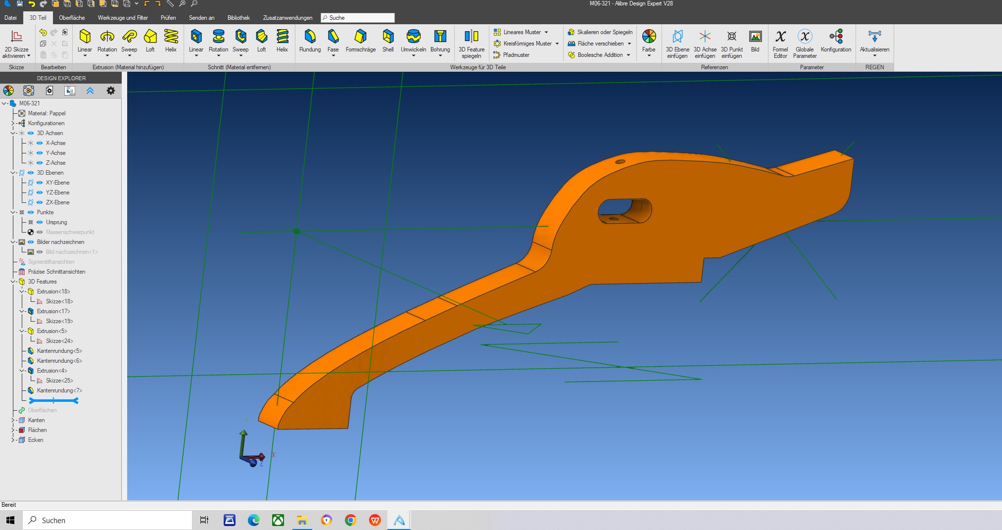 Genau so waren bei der Konstruktion auch die Abmessungen der zur Bearbeitung vorgesehenen Maschinen zu berücksichtigen. Für unser Laser sind das maximal 850 x 400 mm. Breitere oder längere Bauteile mussten daher entsprechend geteilt werden. Für den ersten Prototyp sind die Abmessungen und Formen der einzelnen Bauteile zuerst noch weniger relevant.